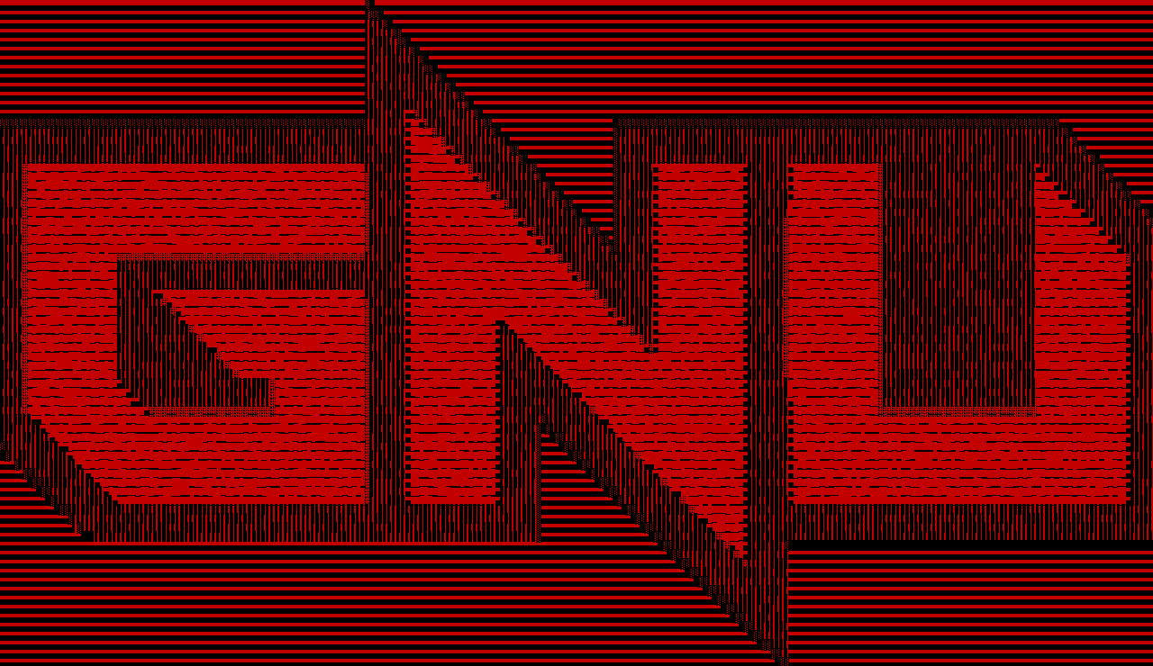 This banner, based on Xero's “nu gnu logo,” looks like a tapestry in which the word “GNU” is embroidered with bright red yarn on a dark red canvas.
