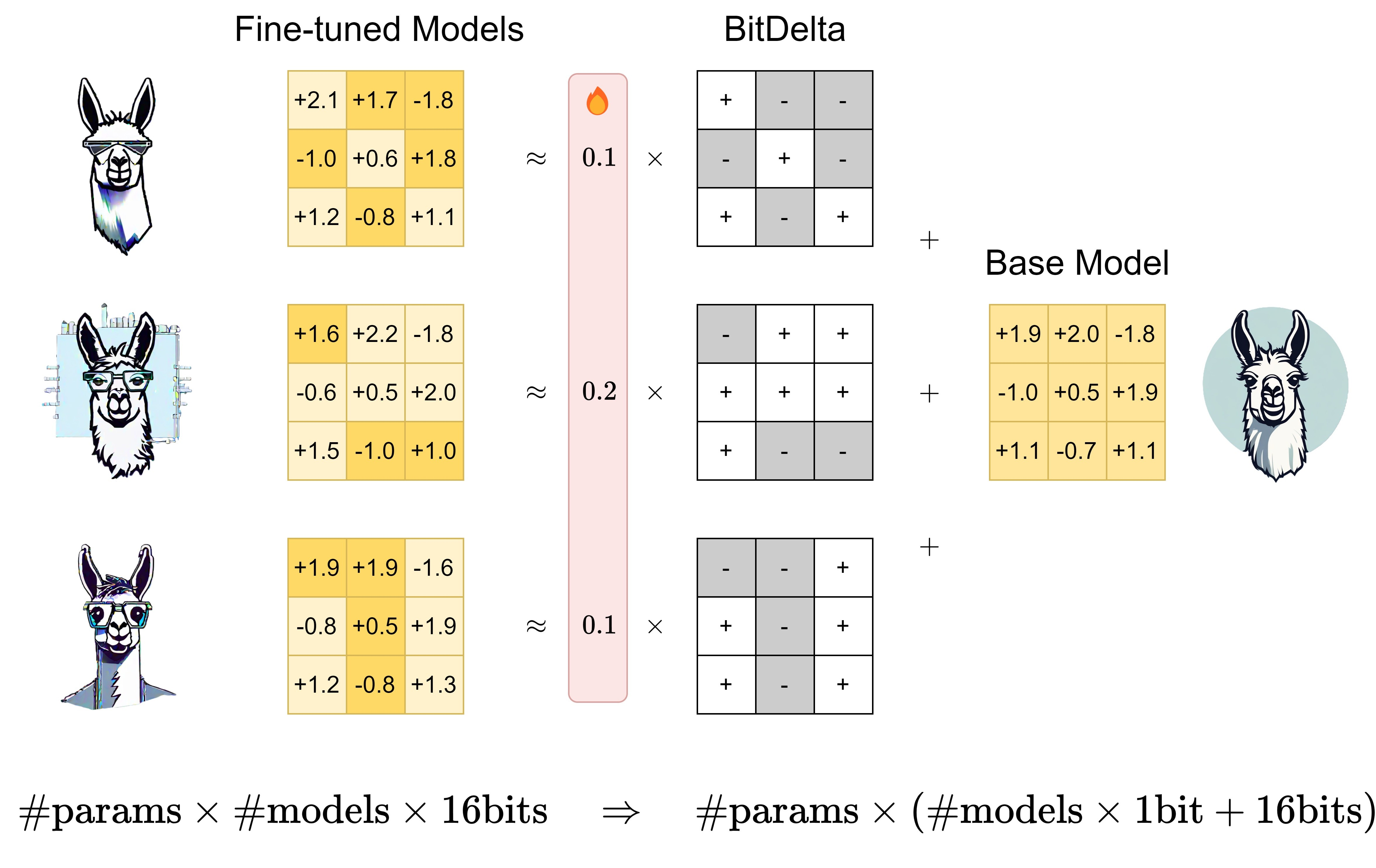 BitDelta compresses the weight delta between a fine-tuned and base model LLM to 1 bit, enabling accurate and efficient multi-tenant serving.
