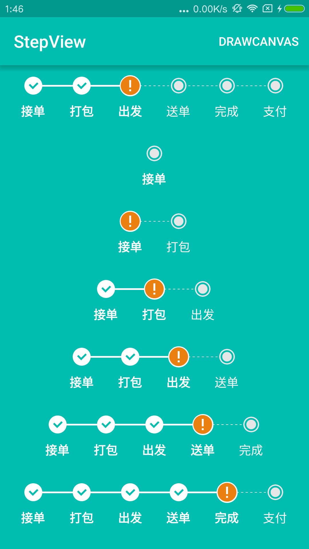 可能当前的StepView展示的点是动态的,有时候是两个,有时候是三个,有时候是四个甚至五个六个,之前有想过展示成下面的效果。