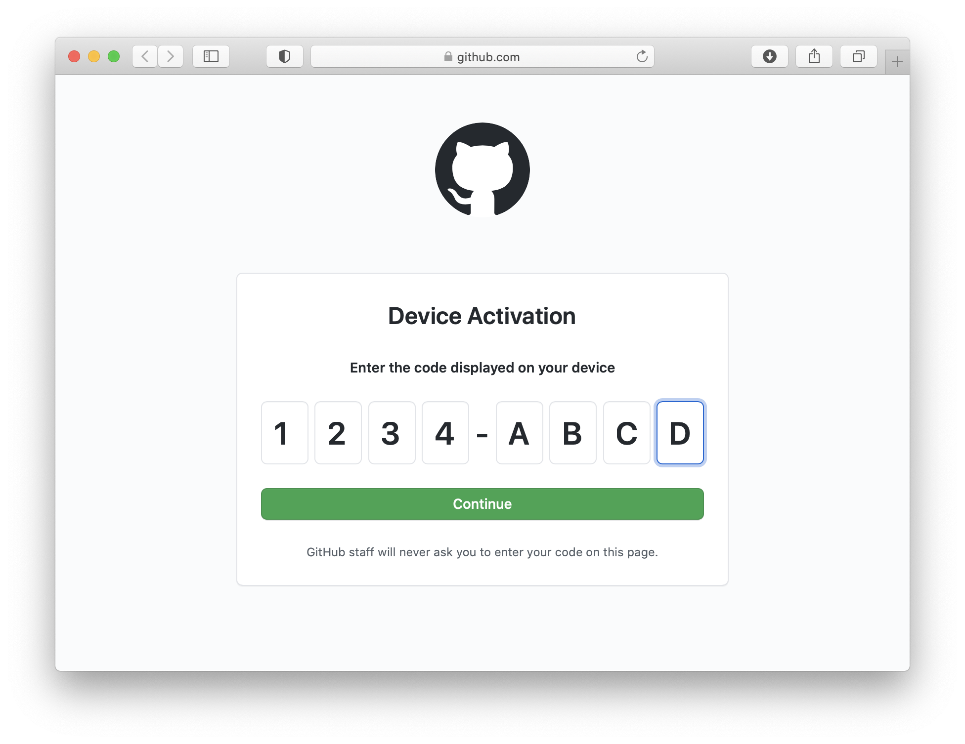 To accommodate client apps, this library implements the OAuth Device Authorization Grant which GitHub.com now supports. With Device flow, the user is presented with a one-time code that they will have to enter in a web browser while authorizing the app on the server. Device flow is suitable for cases where the web browser may be running on a separate device than the client app itself; for example a CLI application could run within a headless, containerized instance, but the user may complete authorization using a browser on their phone.