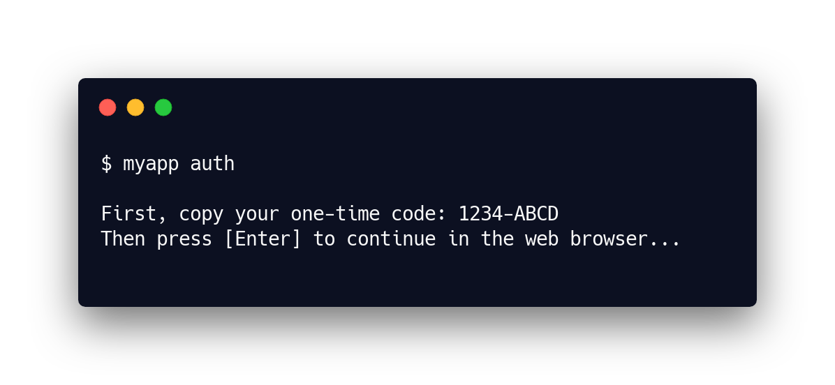 Traditionally, OAuth for web applications involves redirecting to a URI after the user authorizes an app. While web apps (and some native client apps) can receive a browser redirect, client apps such as CLI applications do not have such an option.