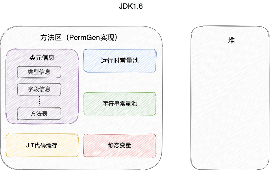 《Java 虚拟机规范》只是规定了有方法区这么个概念和它的作用,方法区到底要如何实现那就是虚拟机自己要考虑的事情了。也就是说,在不同的虚拟机实现上,方法区的实现是不同的。
