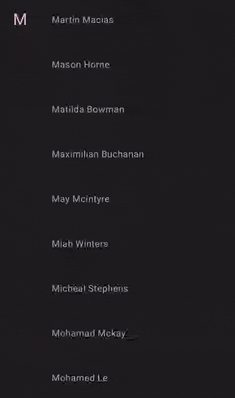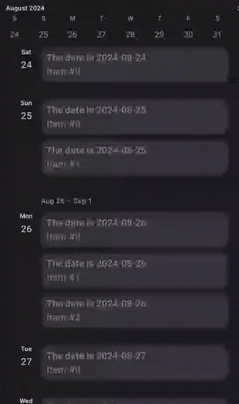 }The StickyHeaders is a container that holds the sticky items. This can be placed anywhere, such as in a Box overlaying the list items or in a Row / Column to align next to / over / under the list.