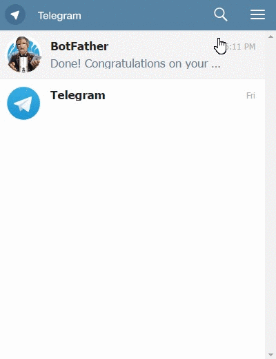 1. Talk to Telegram @BotFather, create a new bot and get its API Token.