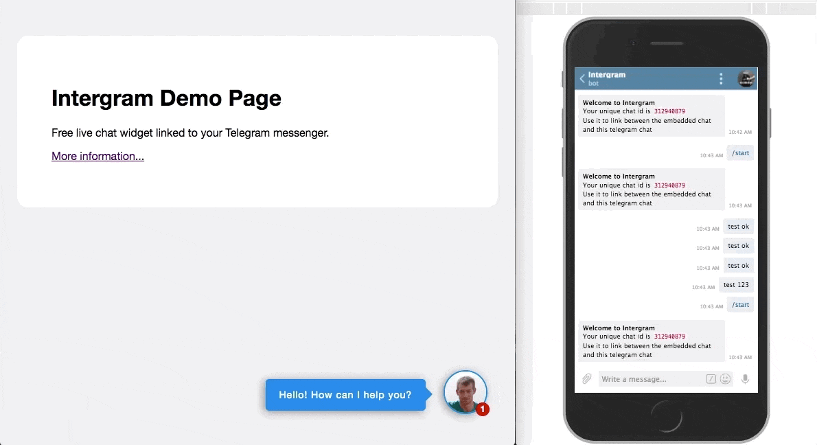 A Free live chat widget that you can easily add to your website. It will let you chat with your website visitors using your Telegram messenger.