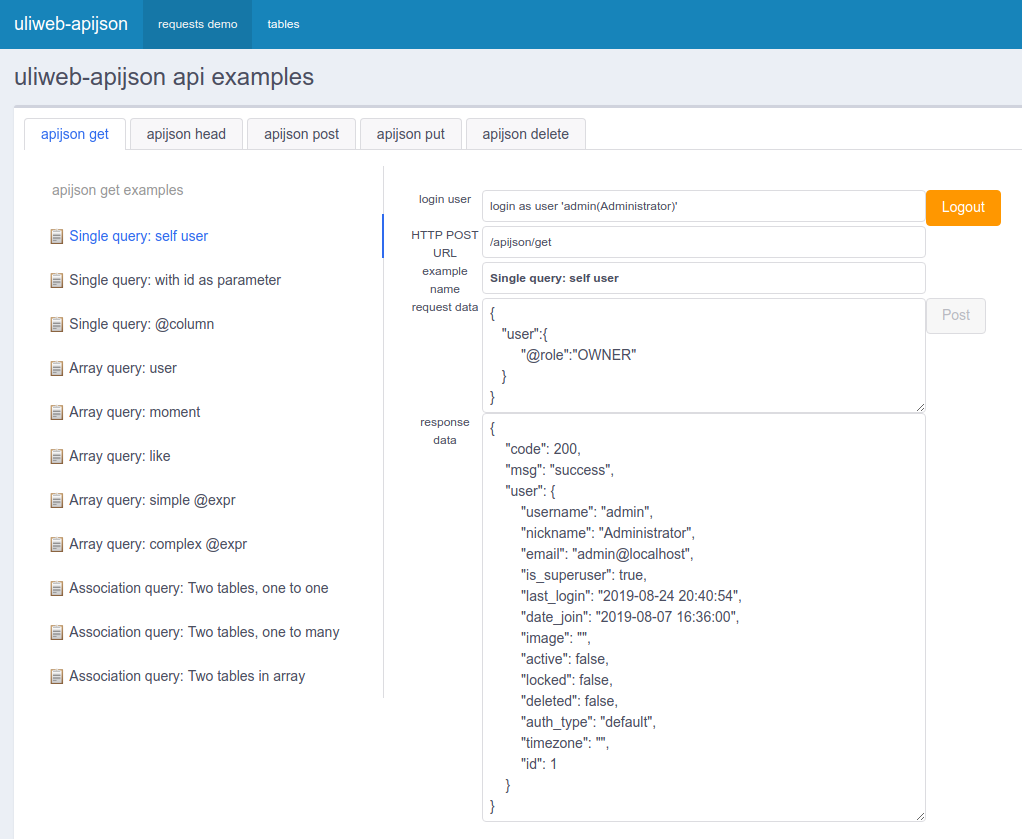 Users in demo for test: admin/usera/userb/userc , password: 123