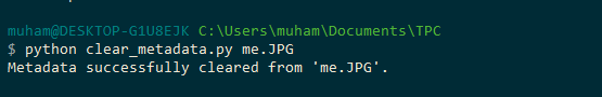 print(f"Metadata successfully cleared from '{imgname}'.")