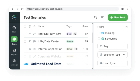 Test and improve the performance of websites, web applications, and web services/APIs with LoadView.